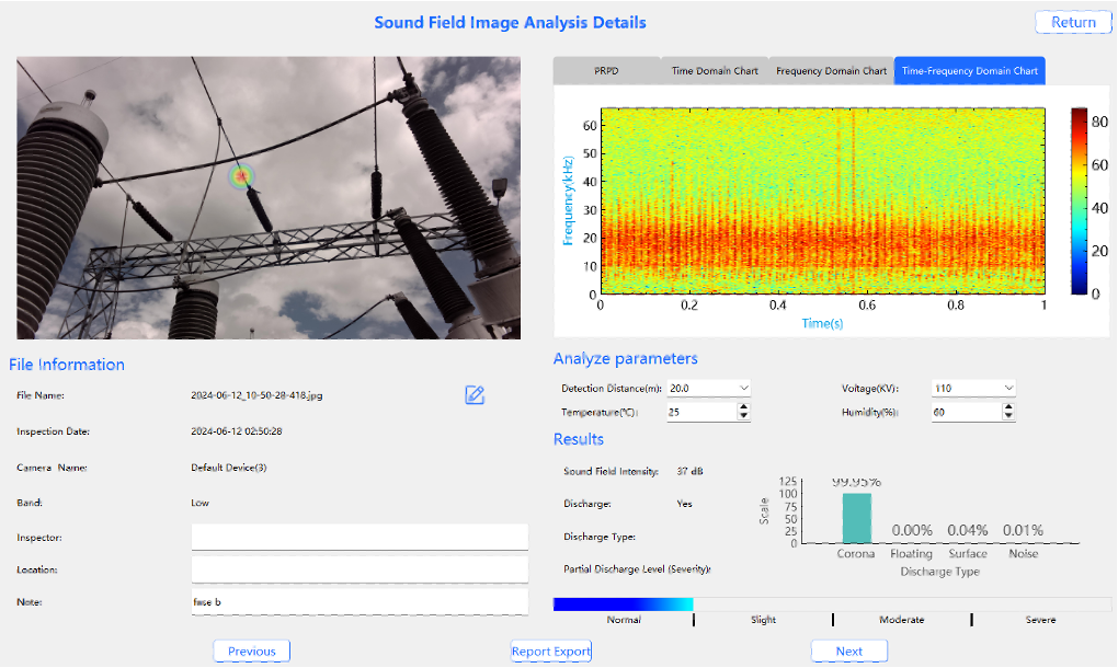 Severity quantification: Assess discharge severity and potential risk based on sound pressure levels and other parameters